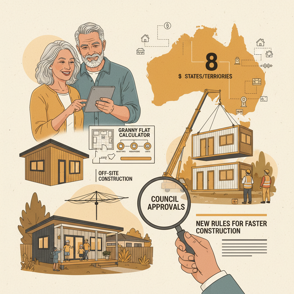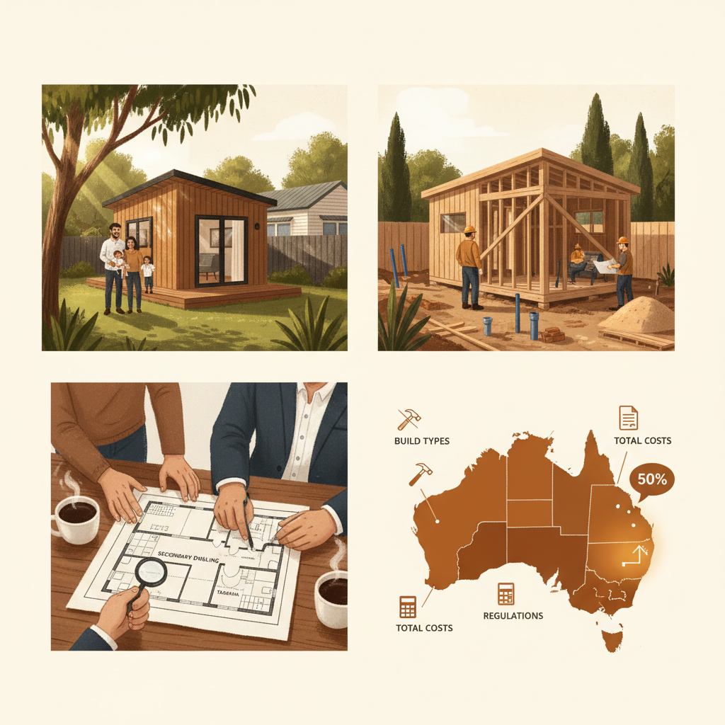 Everything you need to know about building a granny flat in Australia. Costs, regulations, approval pathways, and build types — all based on real data.